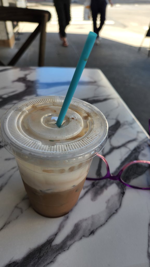 The coffee is a bit less expensive, as noted, than the other chains. For instance, compared to the high-priced spread at Blank Street I sampled last week it’s a total bargain.